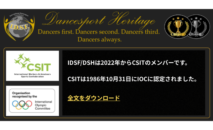 国際ダンススポーツにおいて重要な役割を果たしている団体に加盟することで、